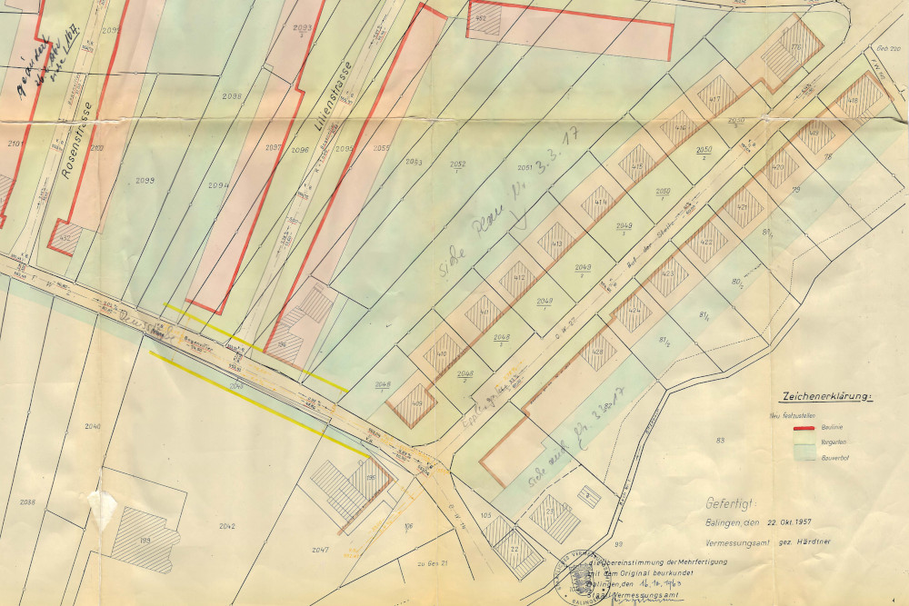 Die Stadt Balingen will für eine planvolle moderate Wohnbebauung das Baurecht schaffen. Eine städtebauliche gewünschte, maßgeschneiderte Nachverdichtung wird nun in die sensible Nachbarschaft der Landhaussiedlung eingepasst. Die bestehende Bepflanzung im Blockinnenbereich mit Obstbäumen wird gezielt durch ein konzentriertes Bauverbot im rückwärtigen Teil geschützt und fürs Quartier als Grünraum erhalten. Die Vorgartenzone wird über ein Pflanzgebot gestalterisch gesichert. Die festgesetzte Firstrichtung greift den gründerzeitlichen Gebäudebestand wieder auf, so dass auch der von Vorgärten und klaren Raumkanten geprägte Straßenraum stimmig ergänzt wird.