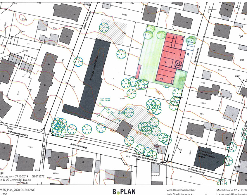 Alle Raum- und Nutzungsansprüche (Kindergarten mit Freispielfläche, Unterrichtsräume mit Schulhof, Ganztagsbetreuung, Mensa, Lernschwimmbecken, öffentlicher Spielplatz) sollten in eine integrierte städtebauliche Gesamtkonzeption überführt werden.