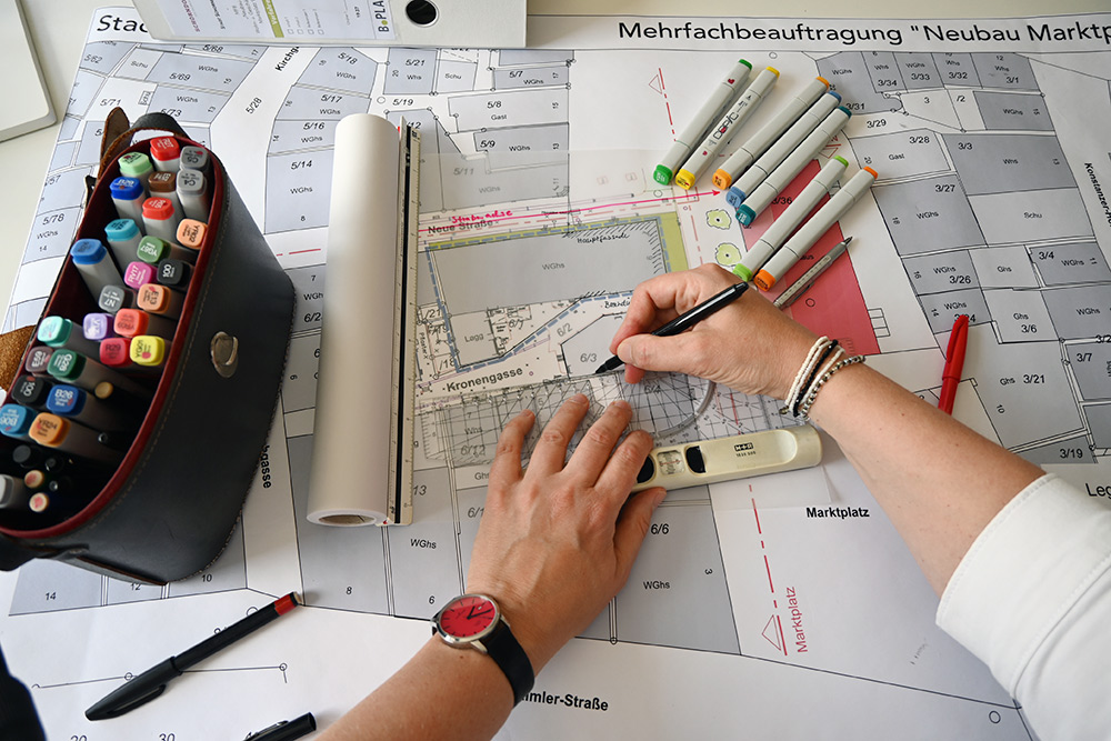 Städtebauliche Analyse • Architekturentwurf • Städtebaulicher Entwurf • informelle Planungen • Entwicklungspläne • Rahmenplan • Machbarkeitsstudie • Quartiersentwicklung • Stadtumbau-/Kfw-Projekt • Nachhaltige Mobilität • Klimawandelanpassungsstrategien.